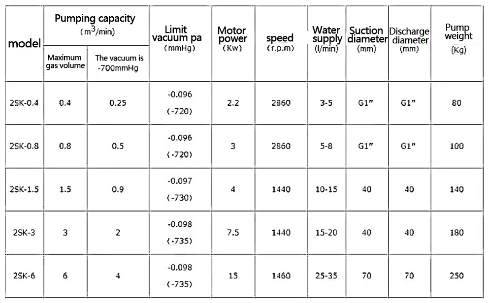 convenient maintenance.2SK series is used for working conditions with suction pressure lower than -0.08mpa, and 2sk-p1 series