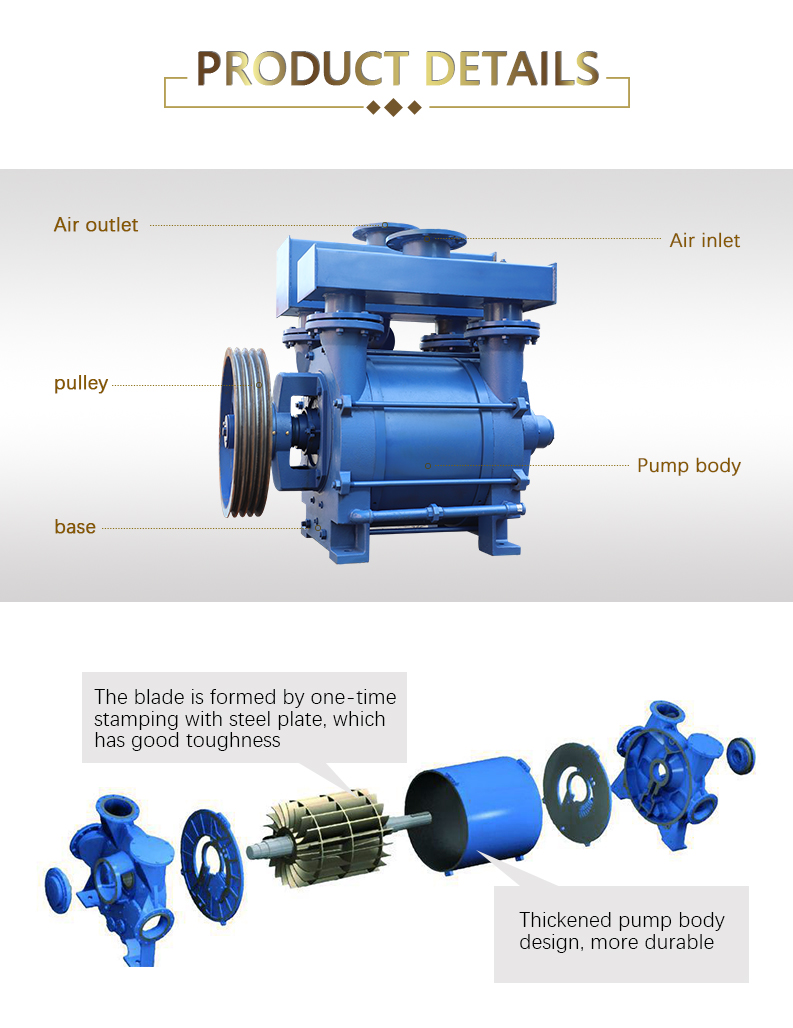 It is usually used to suck gas without solid particles, insoluble in water and non corrosive, so as to form