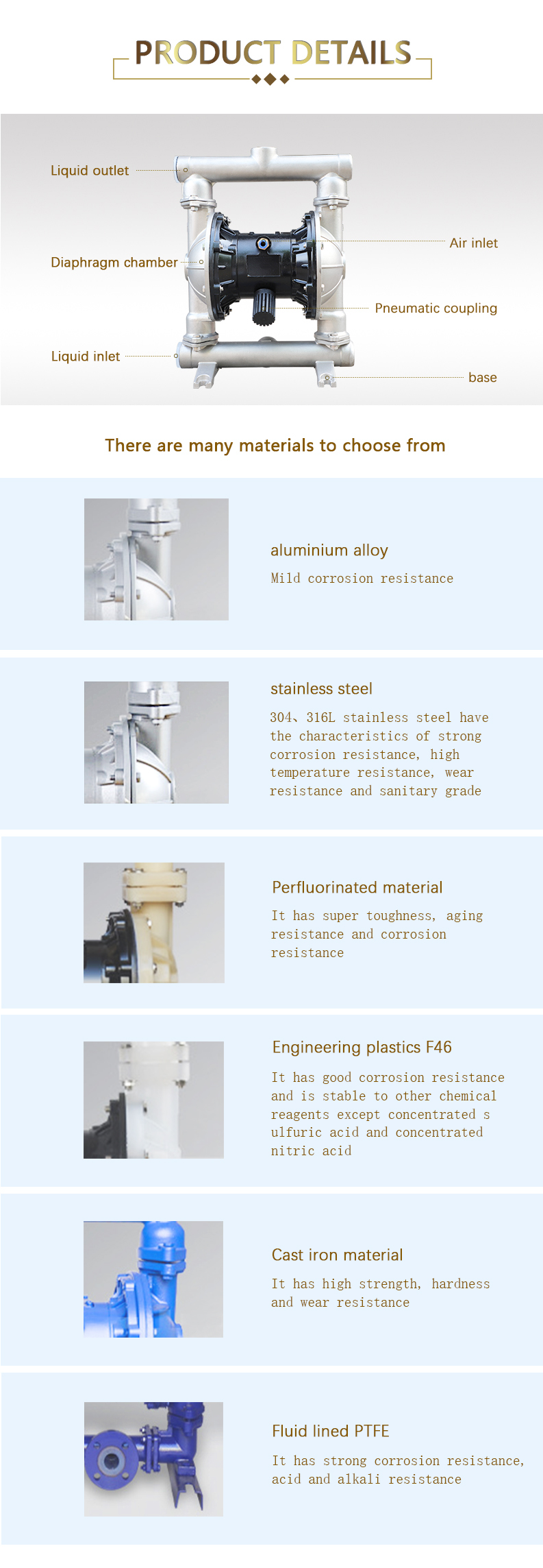 type of pump in China at present. Using compressed air as the power source, it can absorb all kinds of corrosive liquid, liquid with